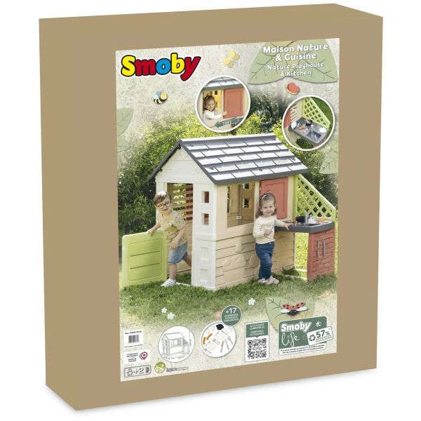 Domček na hranie Smoby Nature je ľahko zostaviteľný, robustný a bezpečný, čo z neho robí ideálnu voľbu pre záhradu alebo terasu. Detailný dizajn a realistické farby prispievajú k realistickému hernému zážitku.